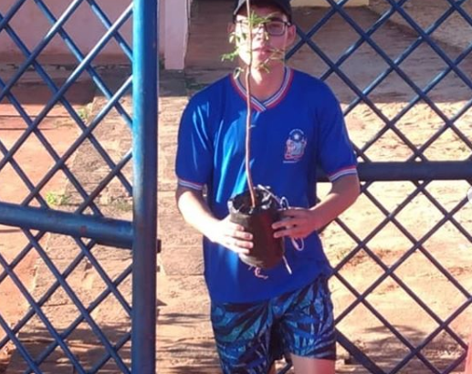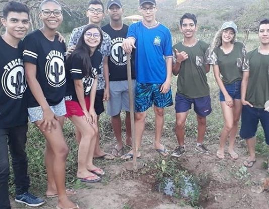 Alunos do Colégio Estadual Professora Almerinda Meira do Carmo, da cidade de Manoel Vitorino, plantaram 11 mudas com a orientação do professor Jeames.